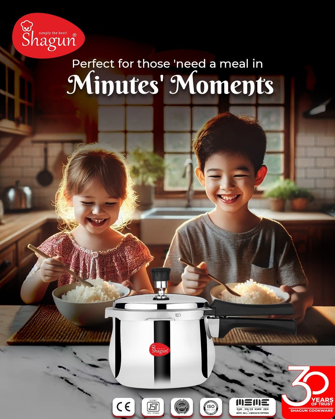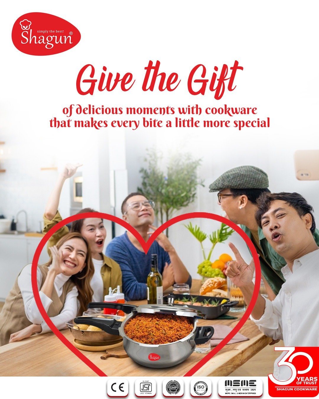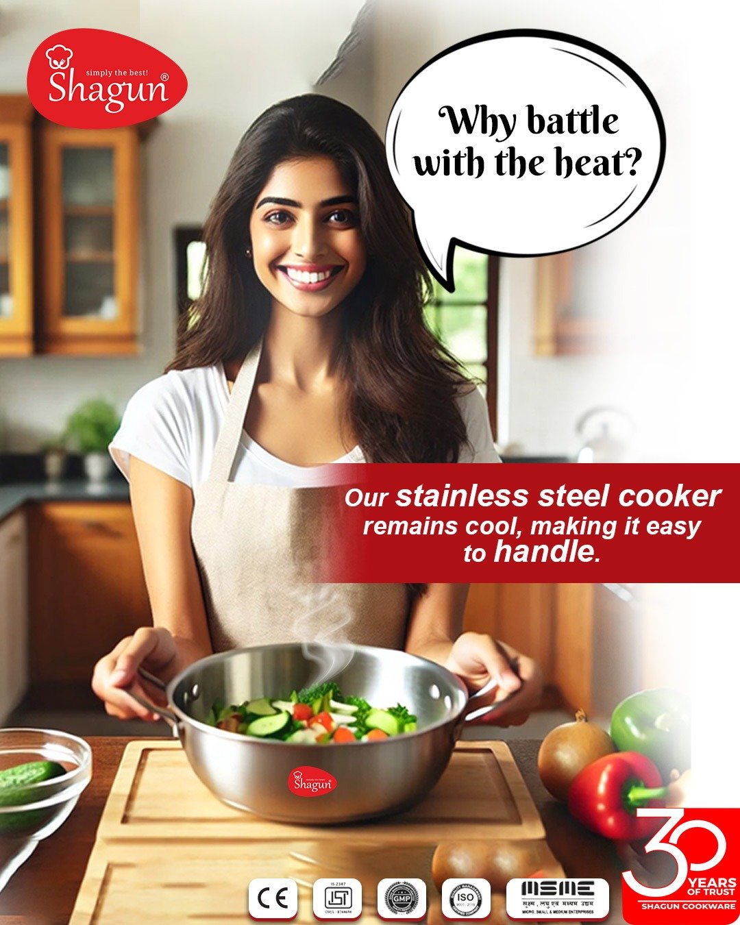 Introducing the Shagun Tri-Ply Pressure Cooker – a premium quality cookware solution designed to enhance your cooking experience. Crafted from 18/8 304 grade stainless steel, this pressure cooker is built for durability, safety, and efficiency. Whether you’re cooking on gas or induction, Shagun’s tri-ply construction ensures faster and even heat distribution, saving time and fuel.