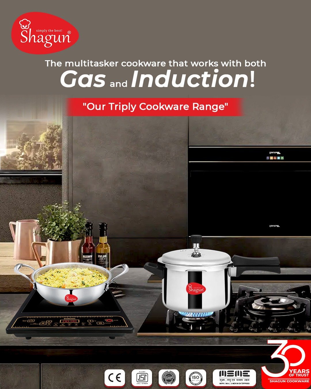 - Compatible with Gas and Induction Cooktops.